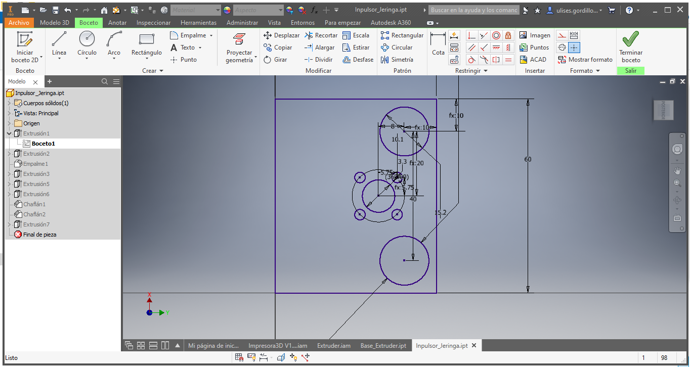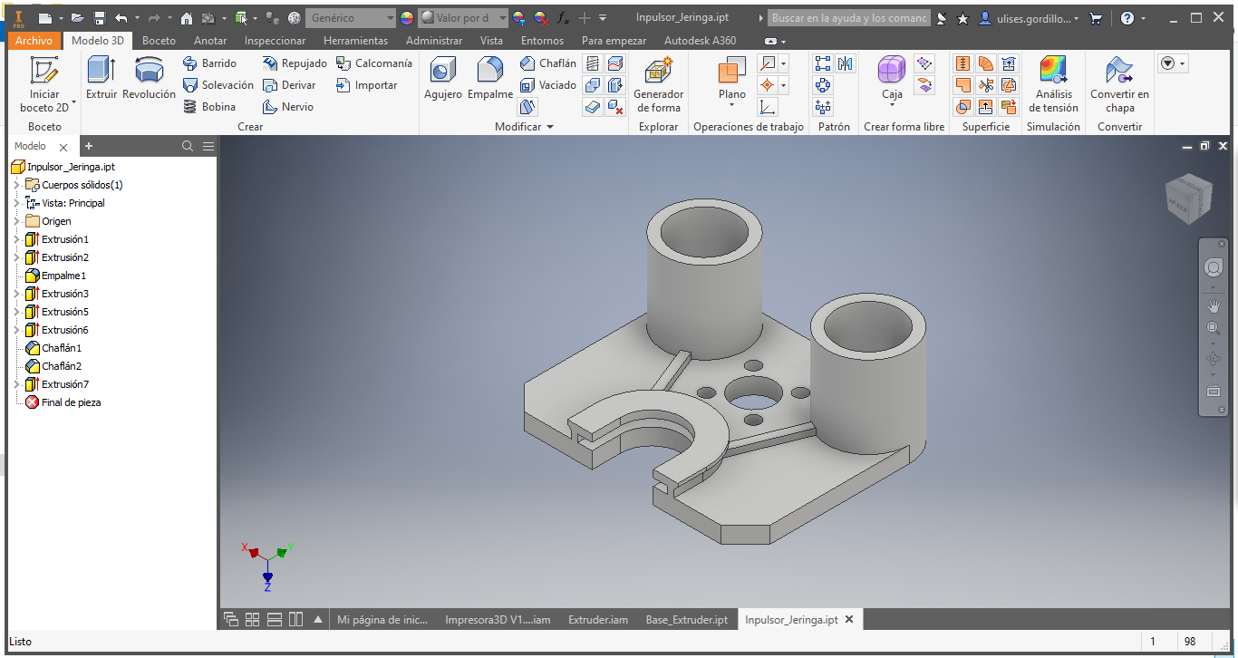 We started by designing the main base of the extruder