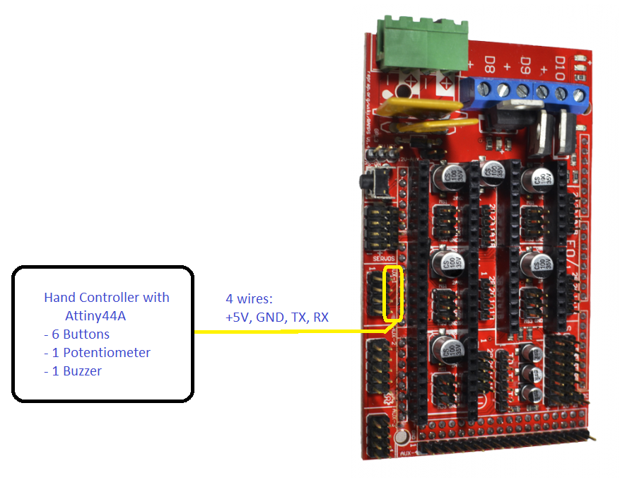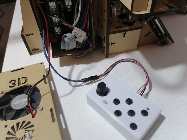 Here we have the hand control connected to the FAB 20 3D printer