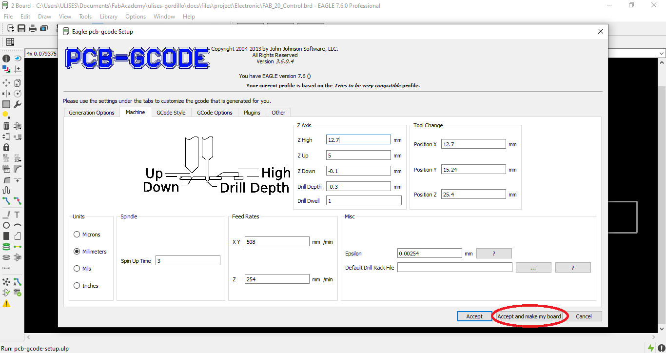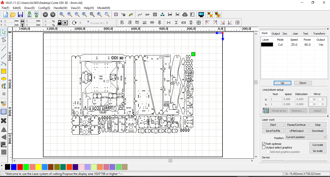 Here we see the interface with the laser cutter.