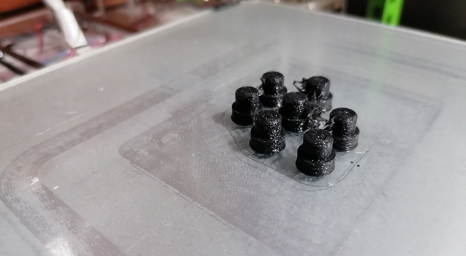 Parts are printed on a filament cast printer