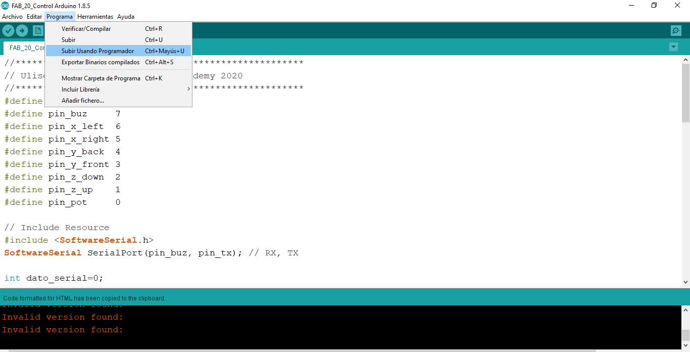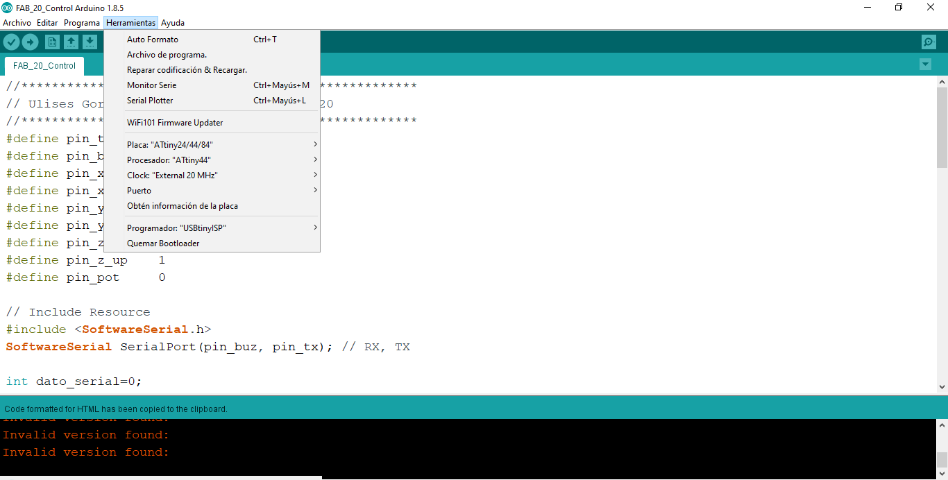 We open the Arduino interface and open the Seria Monitor linked to the serial port of the converter, which in my case is COM18, we can see the following commands sent every time I press a button: