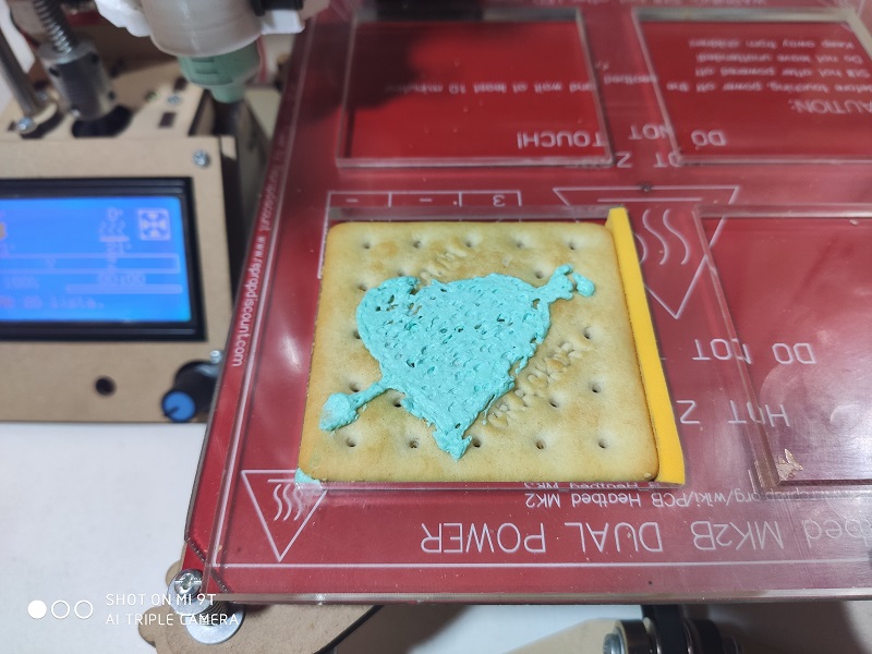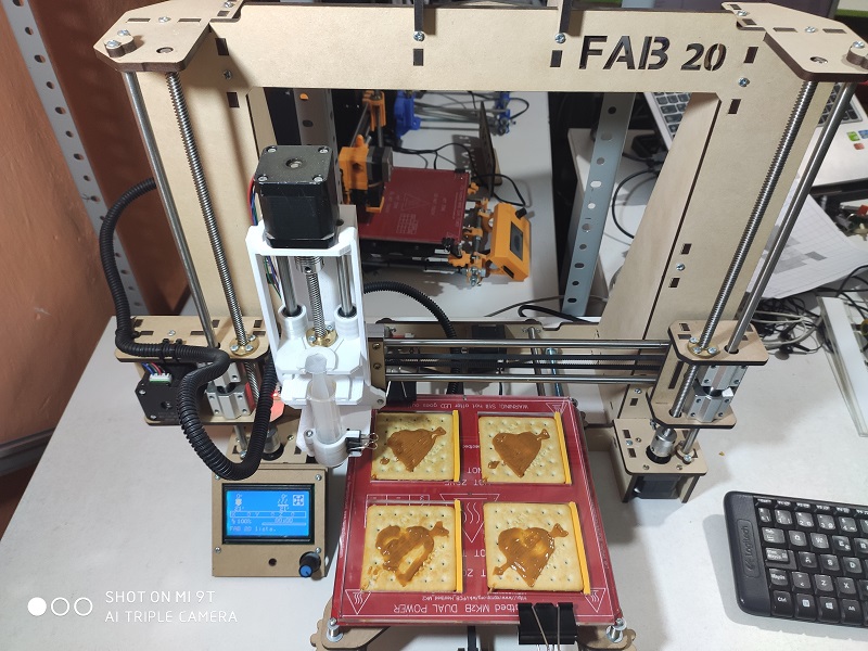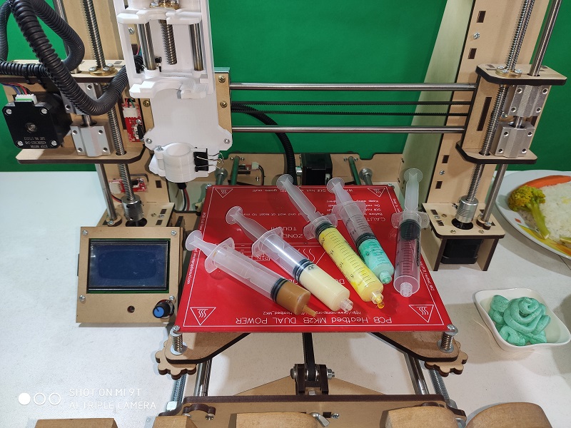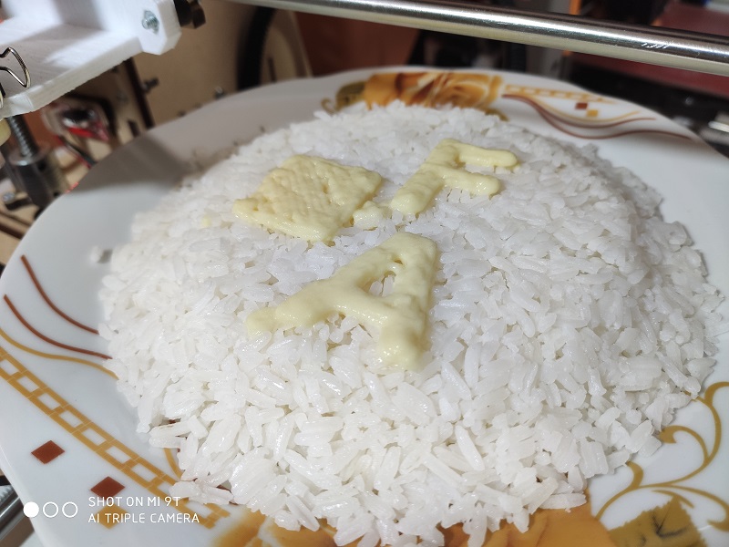 Mashed Potatoes: For printing with mashed potatoes, it was prepared to have a really good viscosity, but we can control this viscosity since we can add more liquid to make it more viscous.
