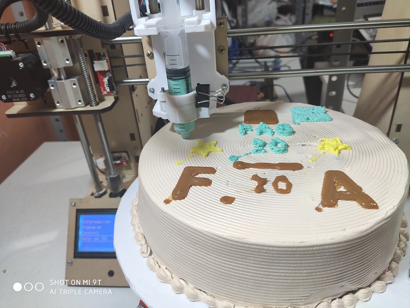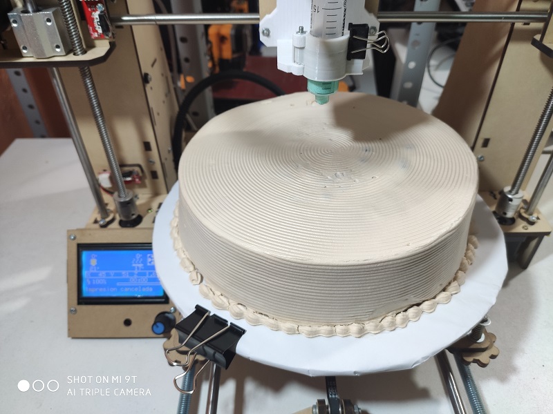 - The cake was bought from a pastry shop, and it also had a non-level surface, so we only printed one but we had to do it by areas.