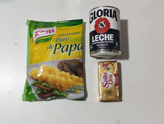 Now we will prepare mashed potatoes with a commercial solution, as we see in the image: