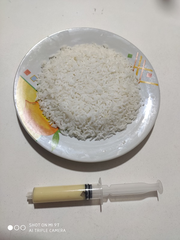 Here we have the mashed Potatoes, placed in a 20ml / cc syringe.
