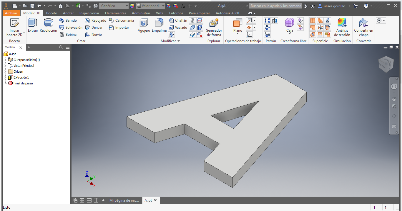 Here the letter A sliced: