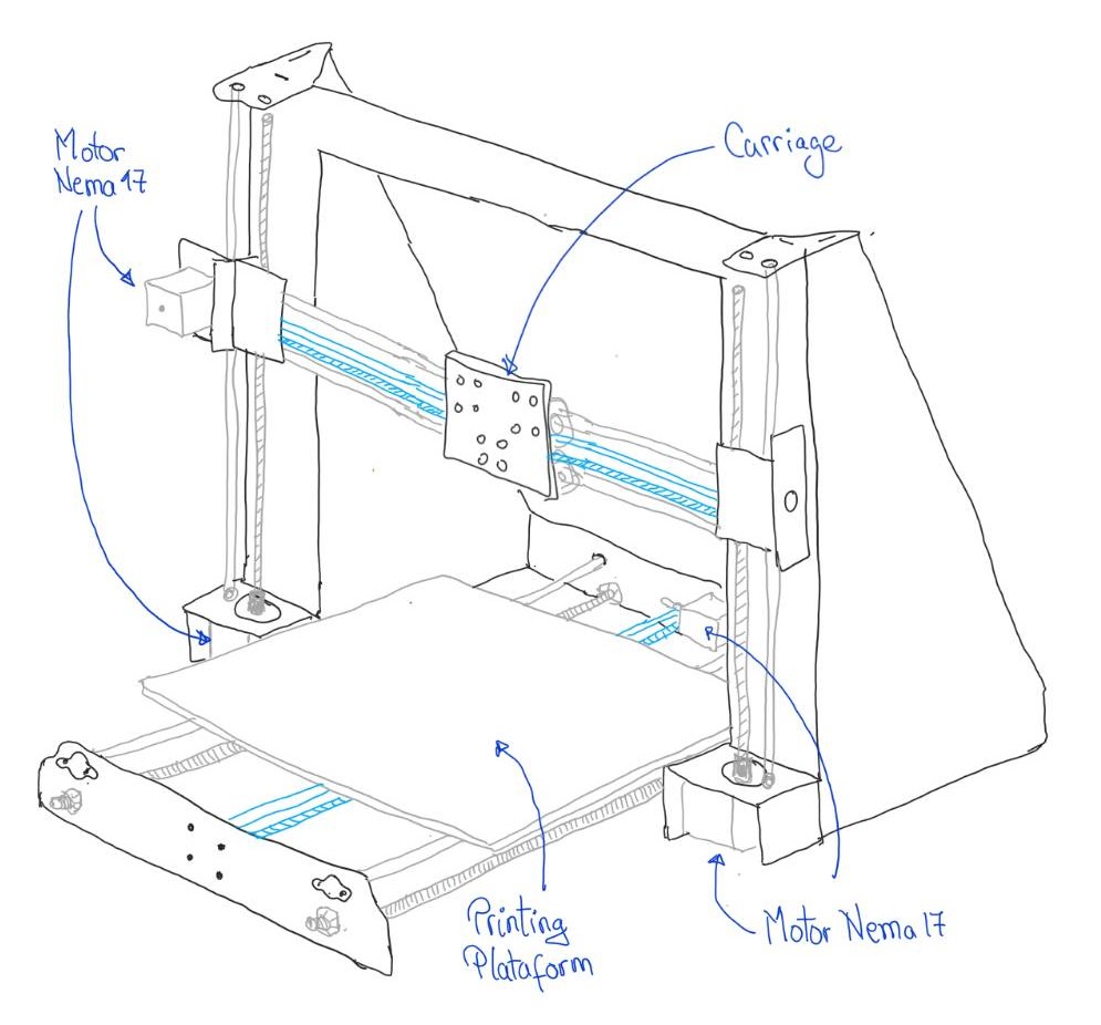 Based on the current models of the most commercial 3D printers, we propose the present sketch: