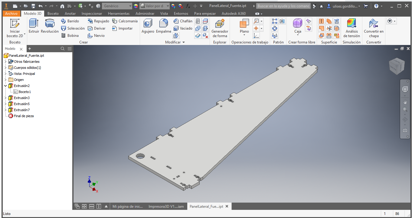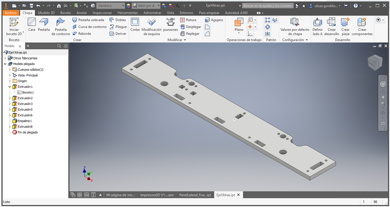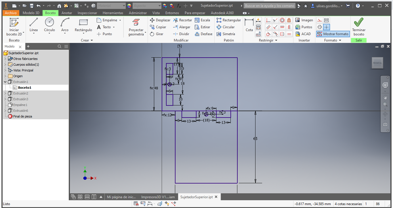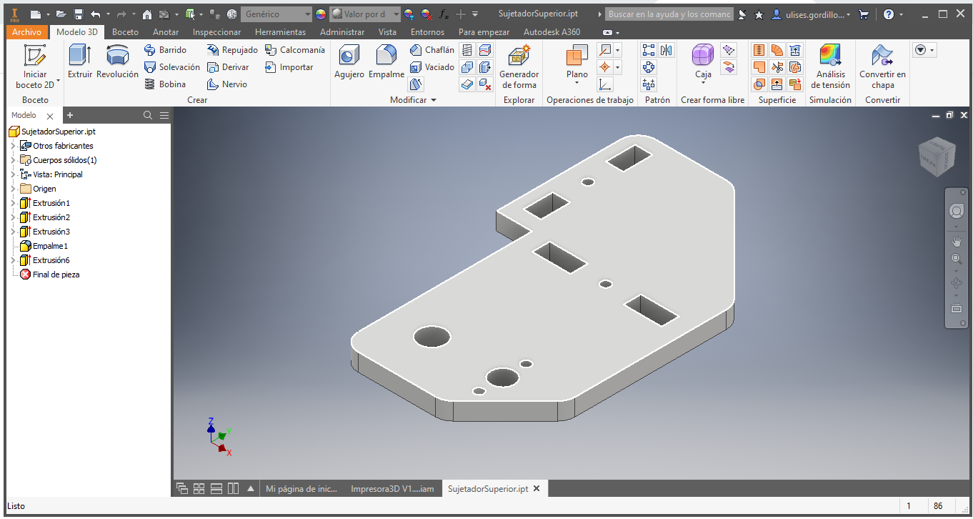 Then we design the upper union of the frame and the side posts of the 3D printer