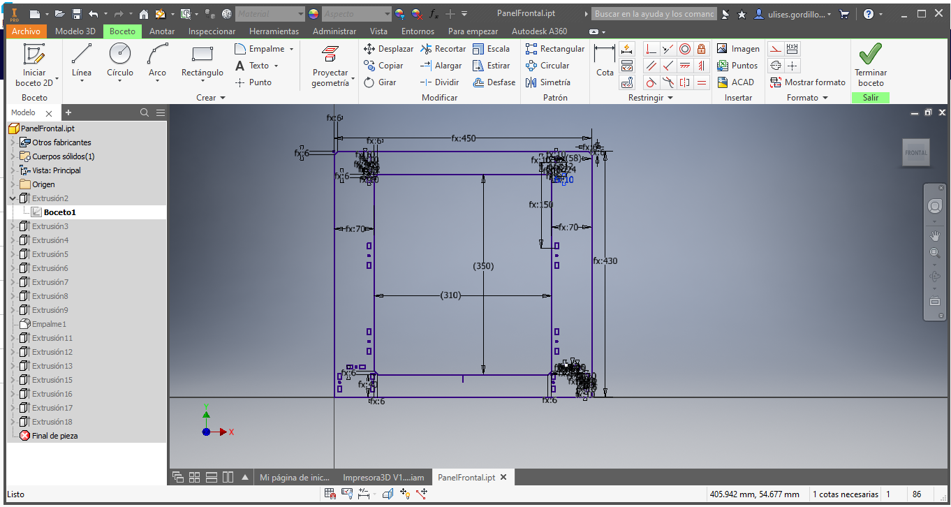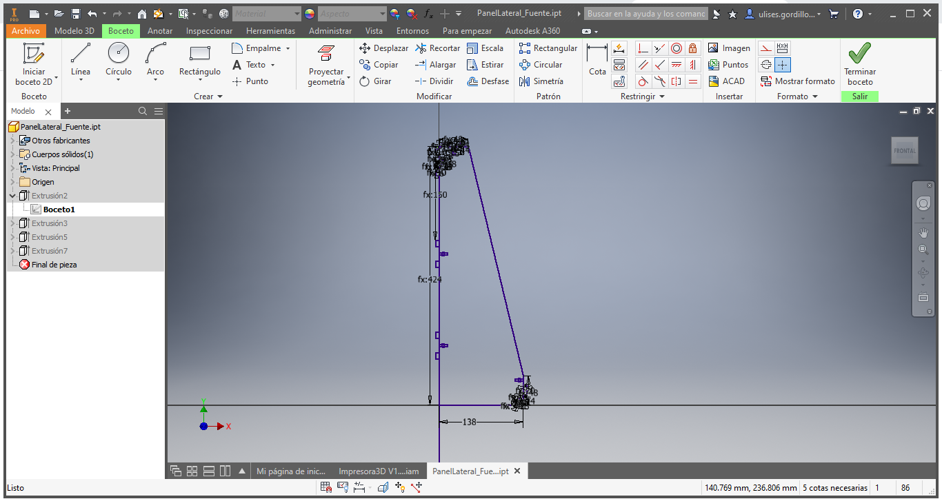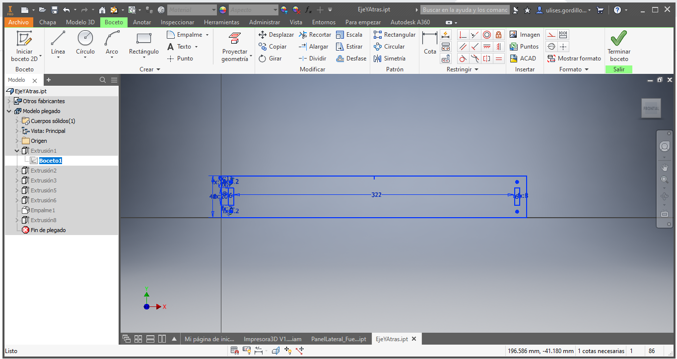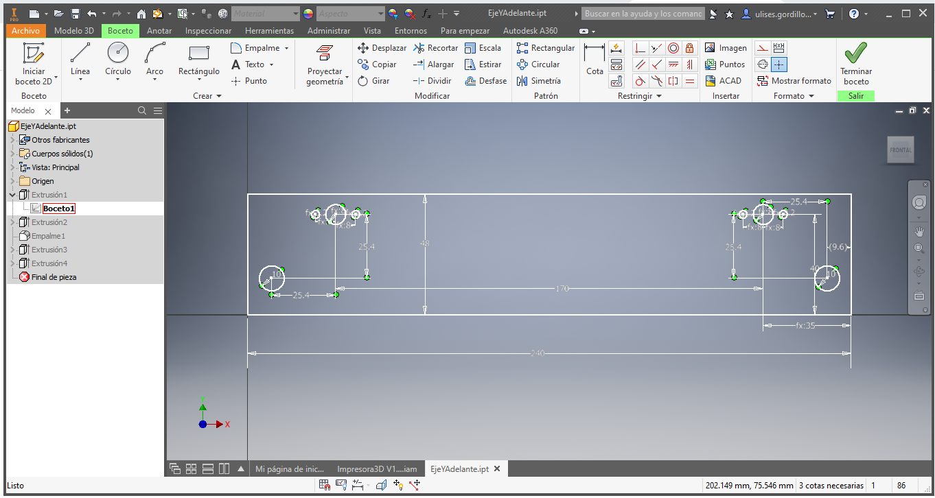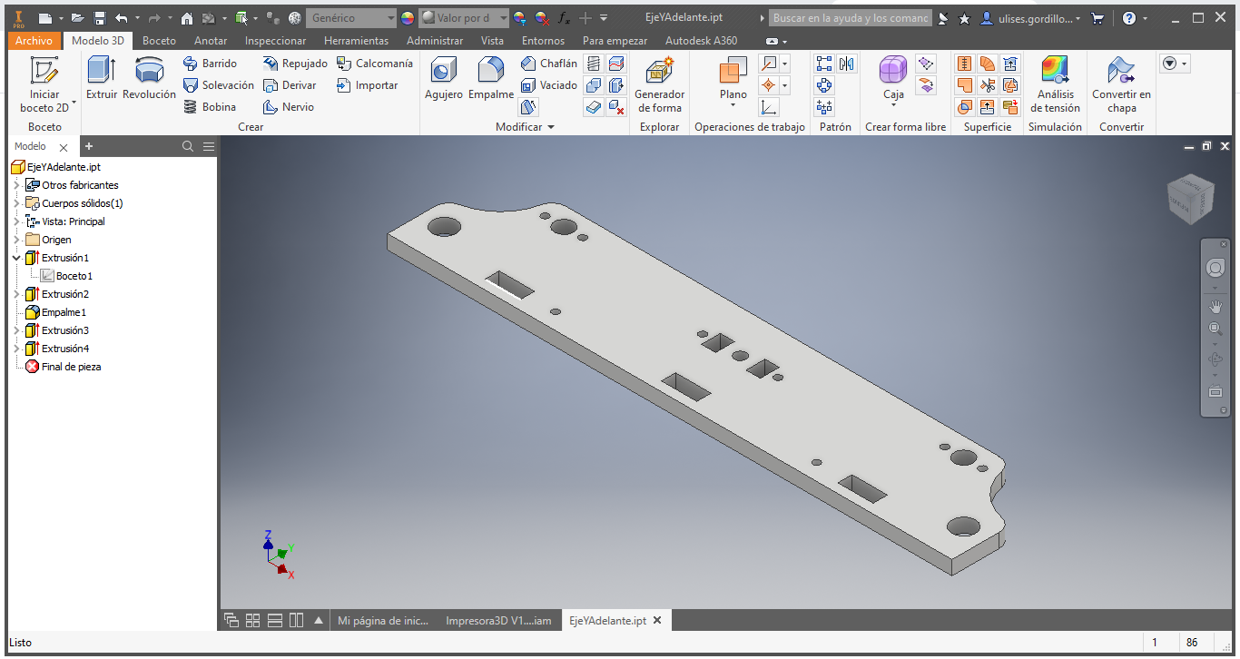 For the structure and to achieve the movements of X, Y and Z we started with him by proposing a sketch of the structure, based on the models of the most commercial printers, the ANET A8 and Prusa I3 printers.
