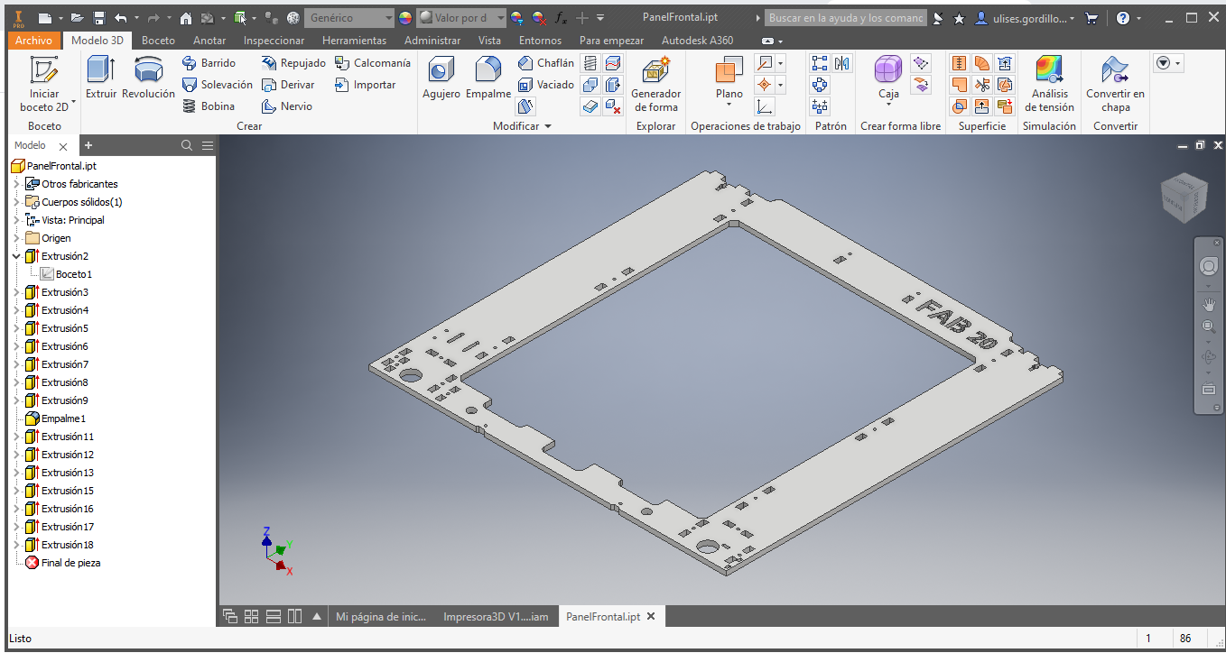 Then we designed the front part of the structure, which will also support the printing platform.