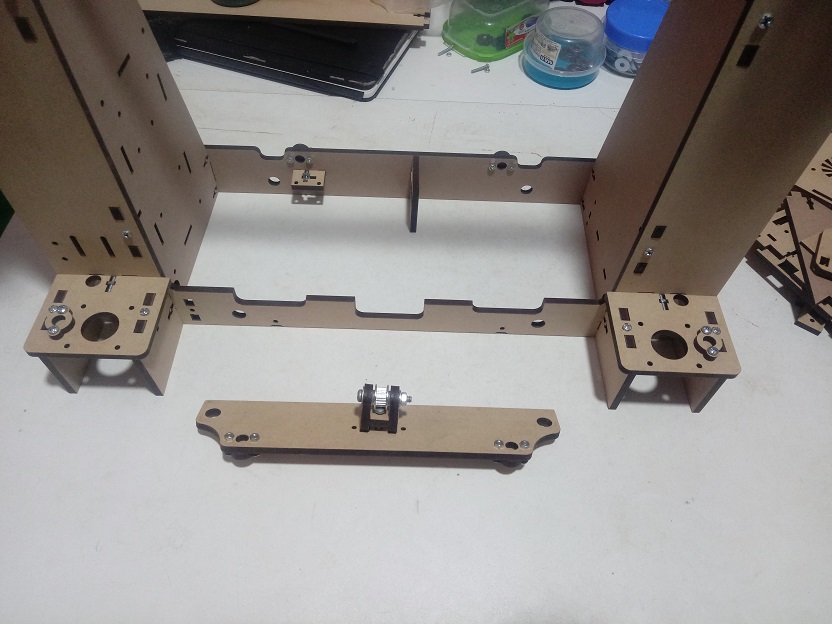 Then we add the metal rods, and the parts of the X axis.