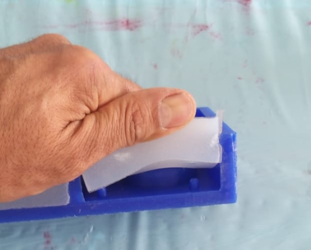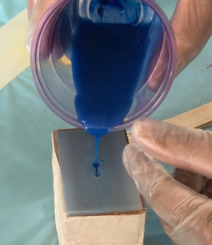 I poured the silicone mixture into the mold and now I have to leave it for 24 hours to be sure it hardens so I can remove it after that.