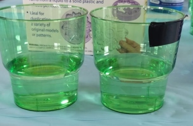 Now since I know the amount of liquid required I divided the amount into two Plastic cups and I marked the amount by placing a sticker of the cups.