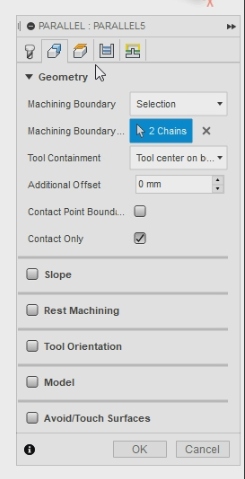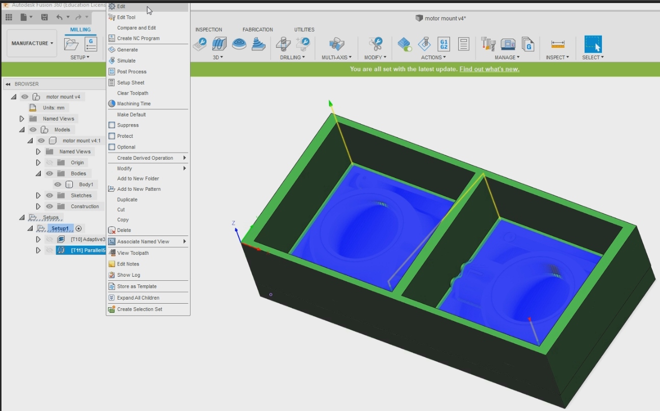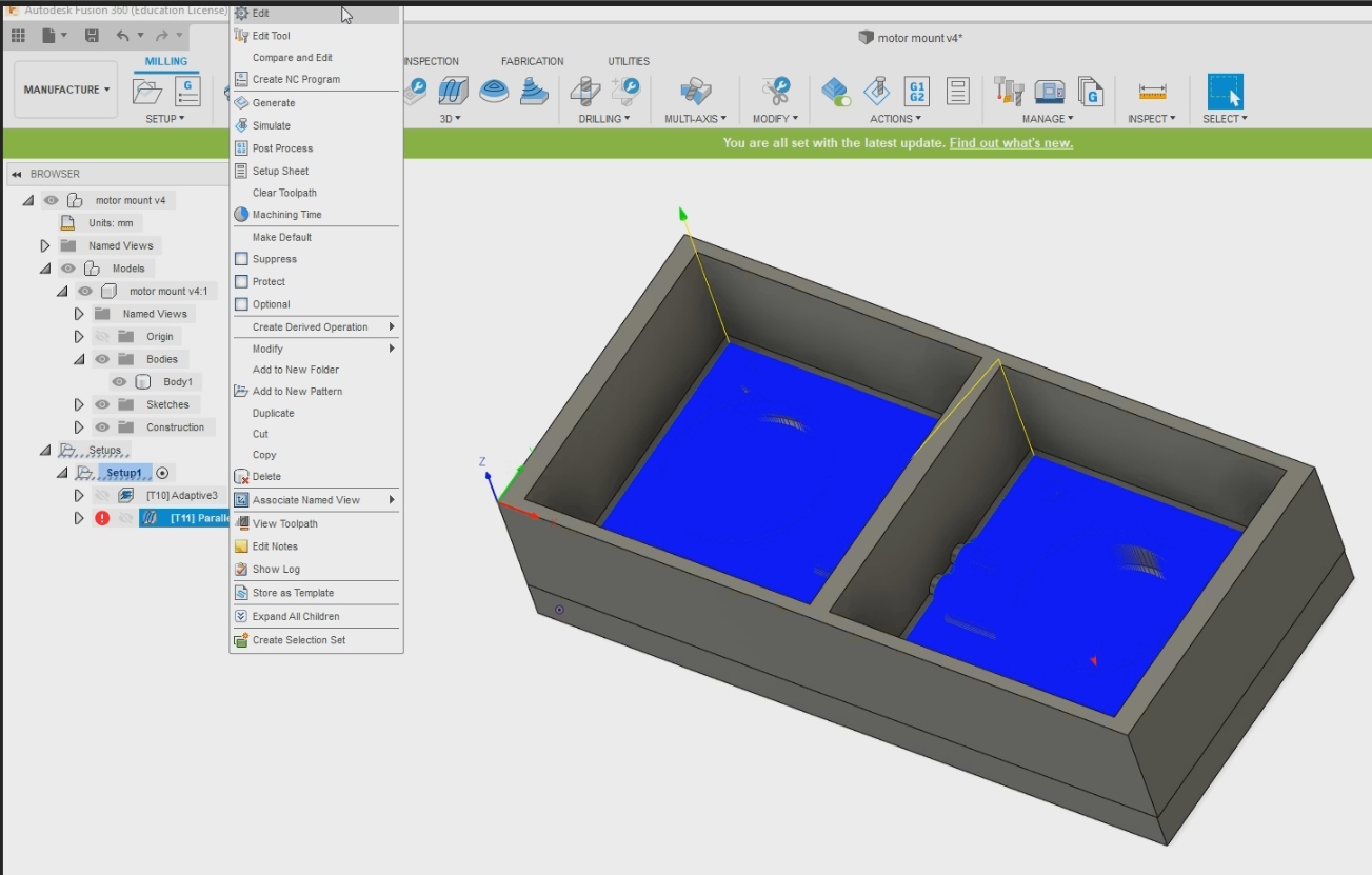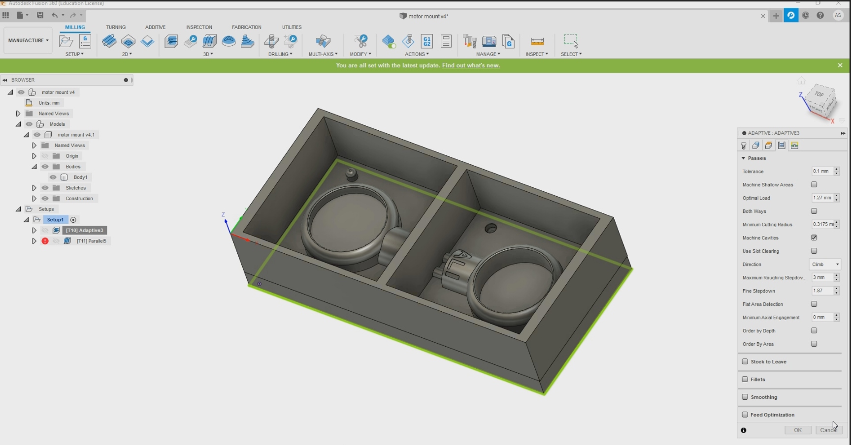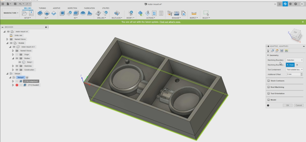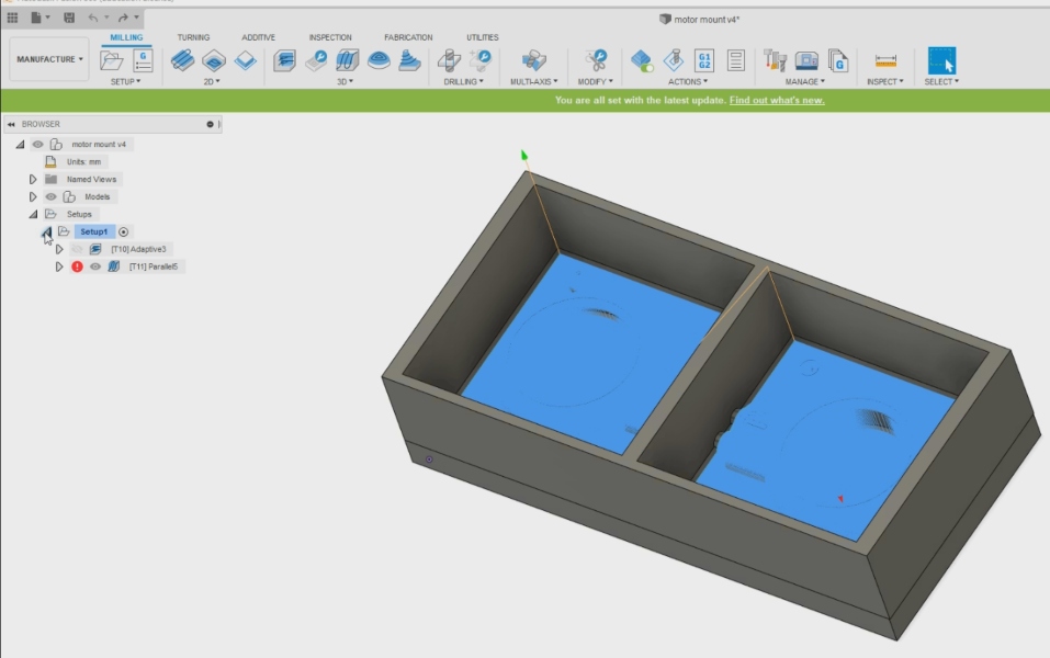 Here under the “Setup1” file I made 2 files named “Adaptive” and “Parallel” which I will use to mill my mold.