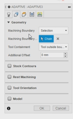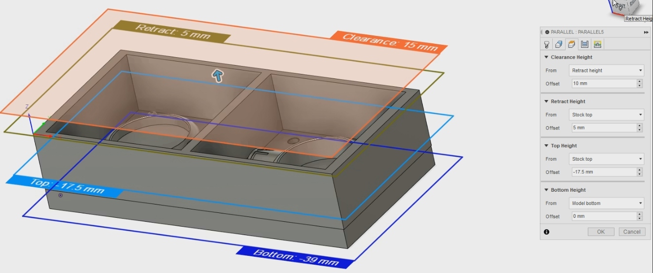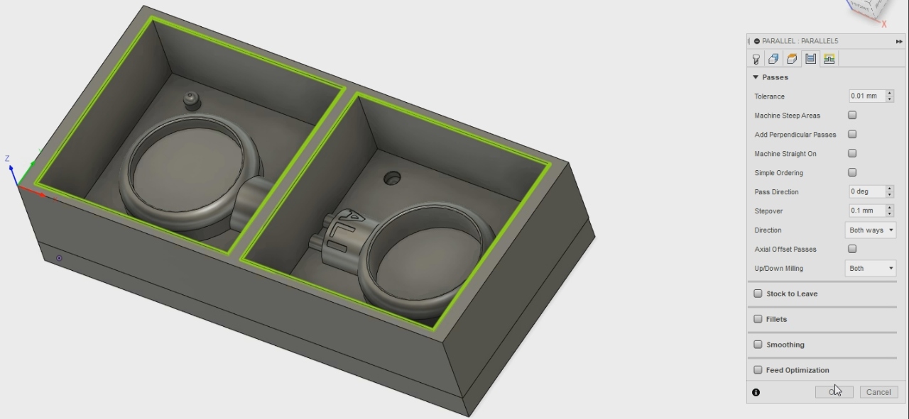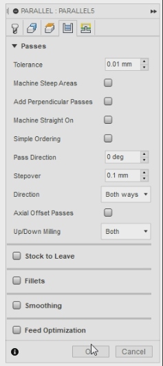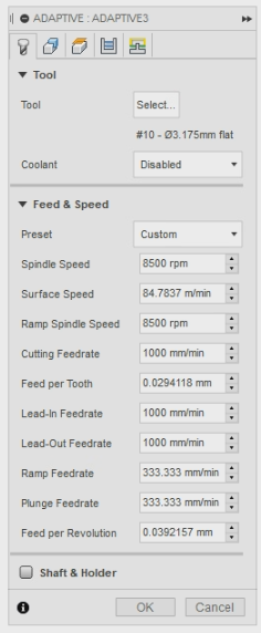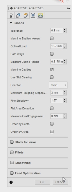 Now since I inputted the settings I can make sure that the two milling options will mill properly. The first one is “Adaptive” that will mill at -17.5 mm and then the “Parallel”