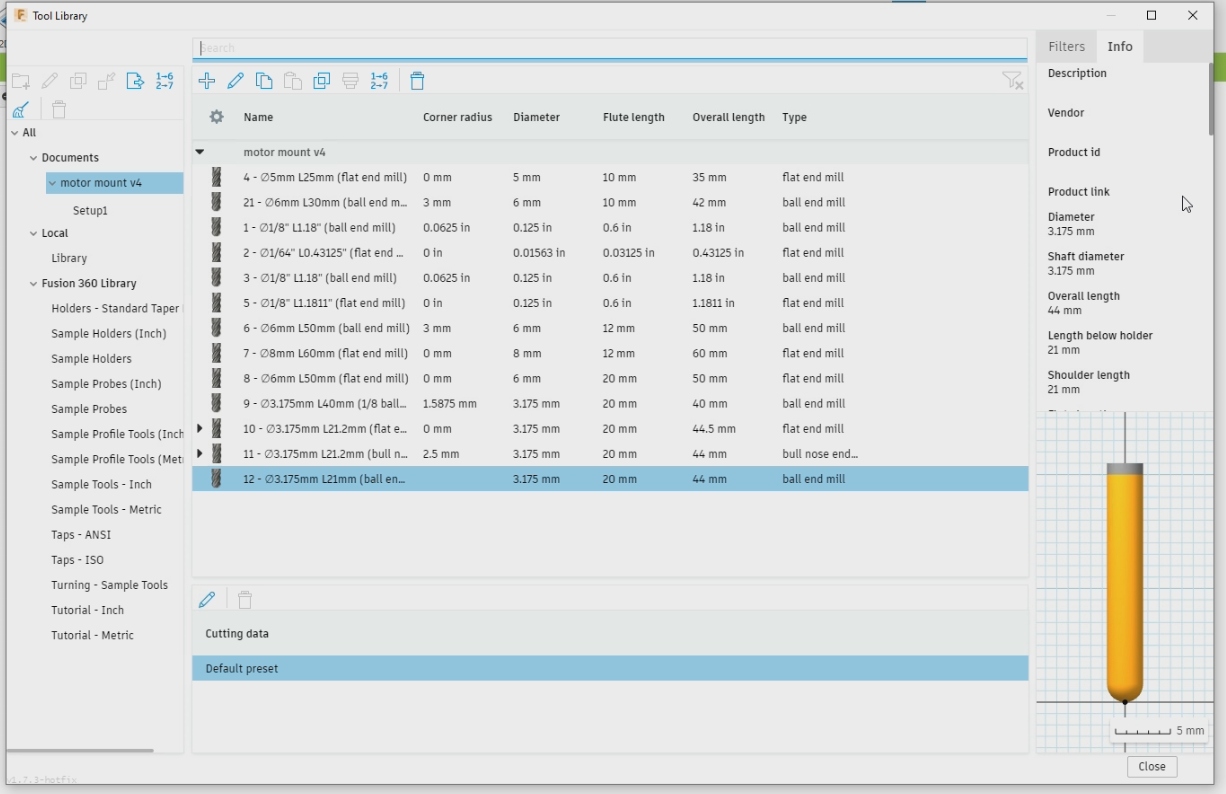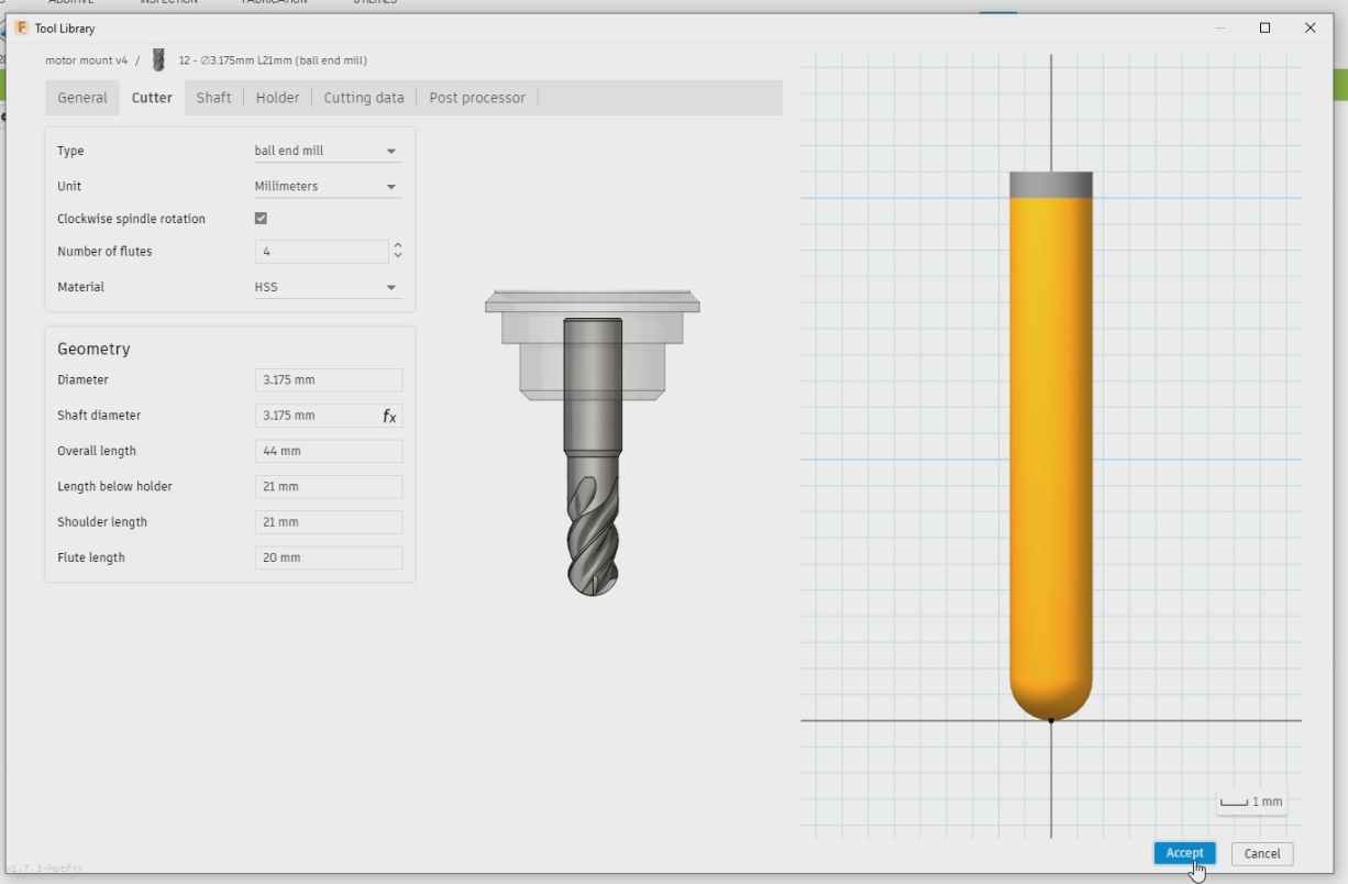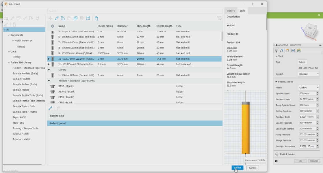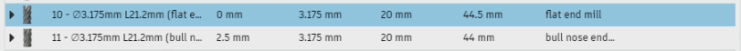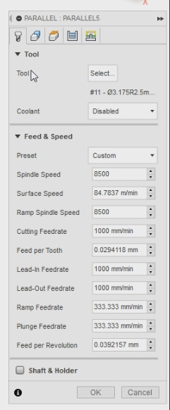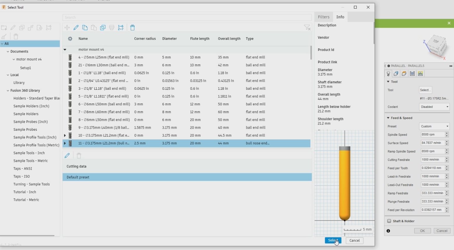 I chose the drill that I wanted to use for milling the “Parallel” section of the mold.