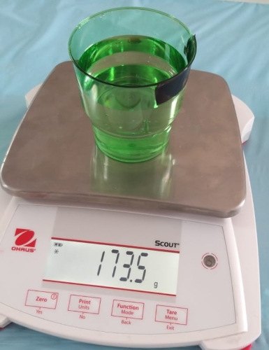 I weighted the half of the quantity of the water and it showed 87.5 grams.