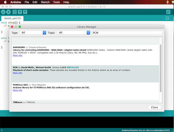 (incase you don’t have the example, you could download it from Sketch > Include Library > library manager > type “PCM”)