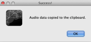 To convert the Mp3 audio record file to numeric values, I used the EncodeAudio application. This is a simple Processing program that reads an audio file and copies its audio data to the clipboard in numeric form. Lunch the EncodeAudio application guide it the mp3 file and it will copy audio data to the clipboard.