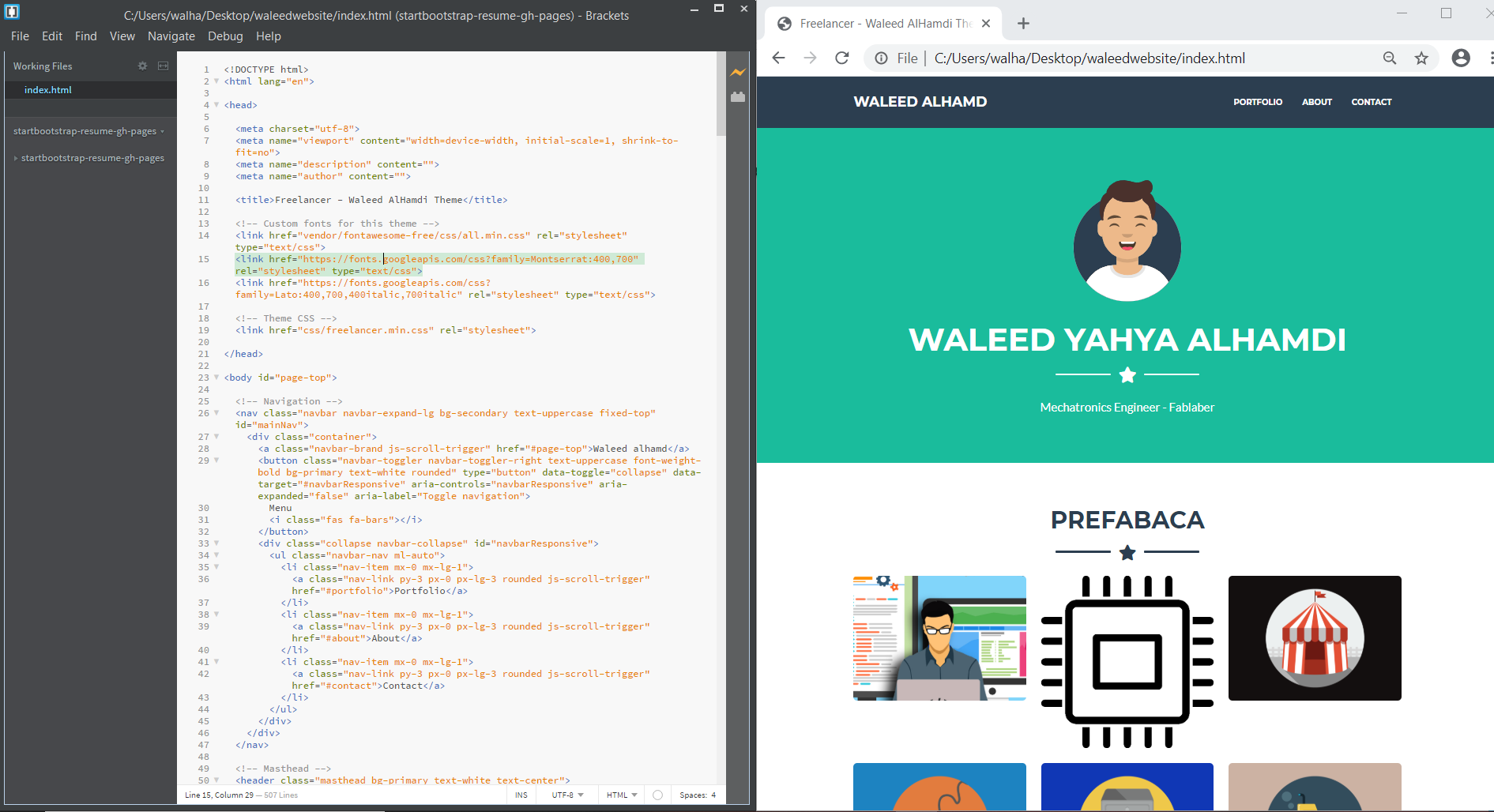 I used the open source template for prefabacademy thanks to Bootstrap portfolio theme for freelancers,