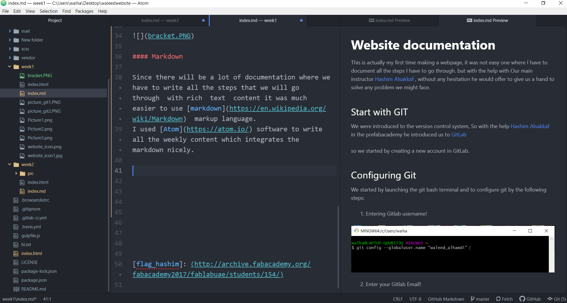 Since there will be a lot of documentation where we have to write all the steps that we will go through with rich text content it was much easier to use markdown markup language. I used Atom software to write all the weekly content which integrates the markdown nicely.