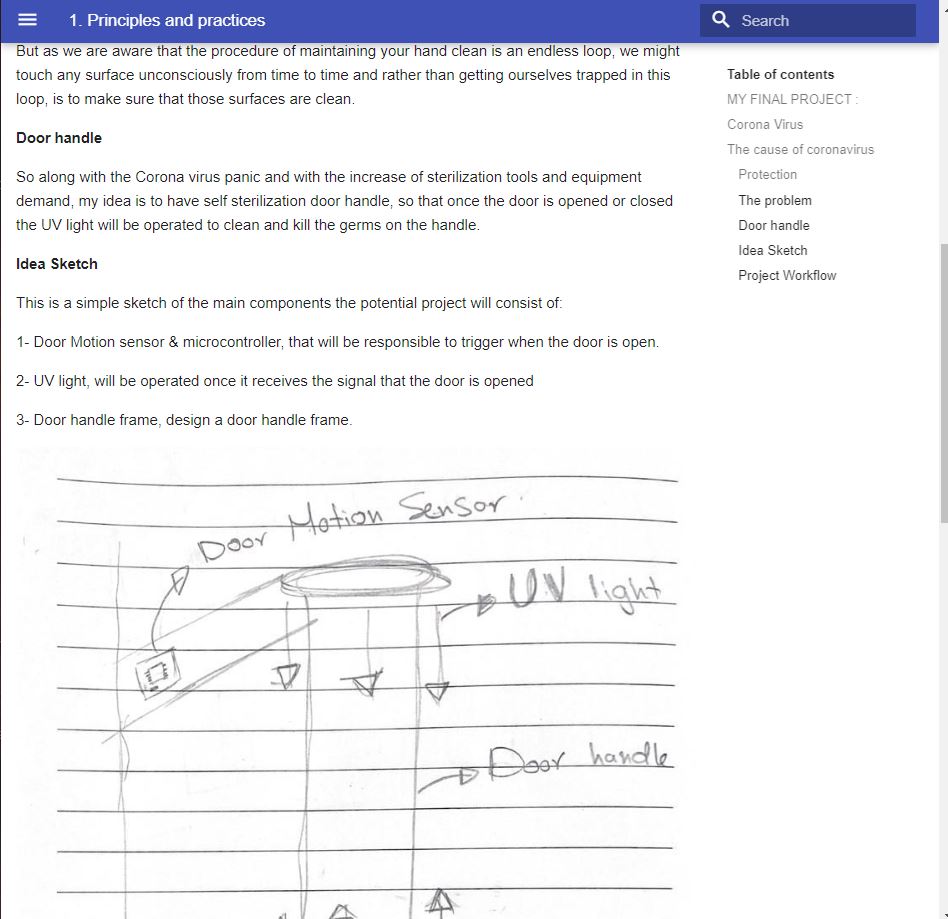 And since I’m documenting in markdown I needed to convert to HTML Language, so that I can link it to my main page, to do so I had to save the file in md format then I used the command line Pandoc which made it easy to convert the the md file to HTML, all what i have to do is to write the following command in the git bash terminal where the md file located