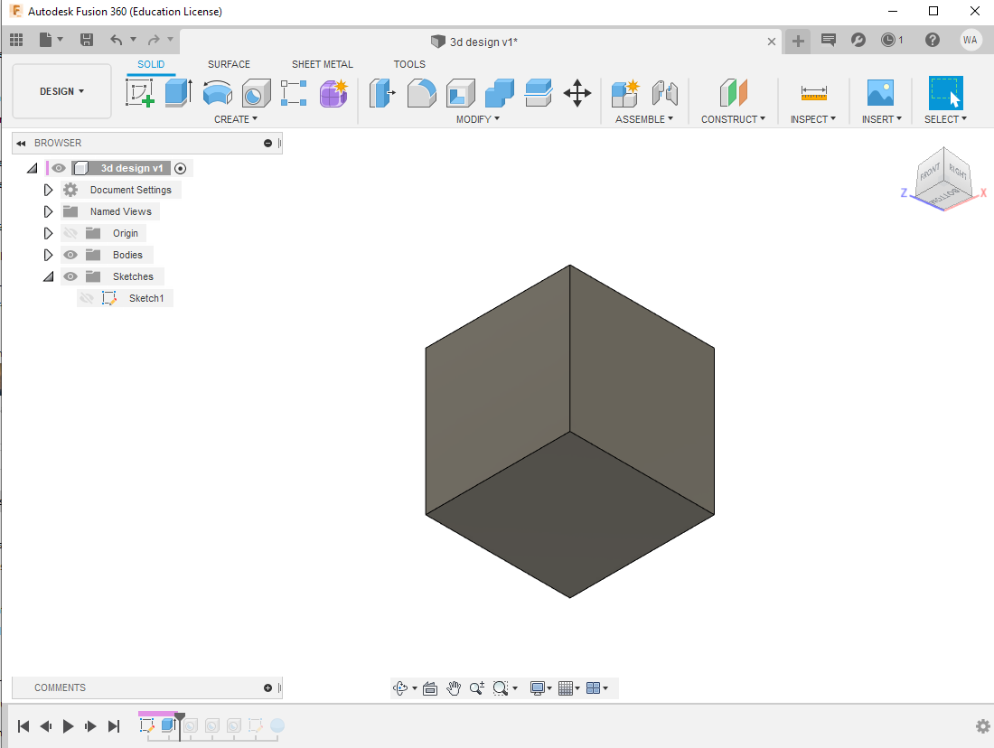 then I used the Extrude tool to create the 3d cube shape with 50 mm height,