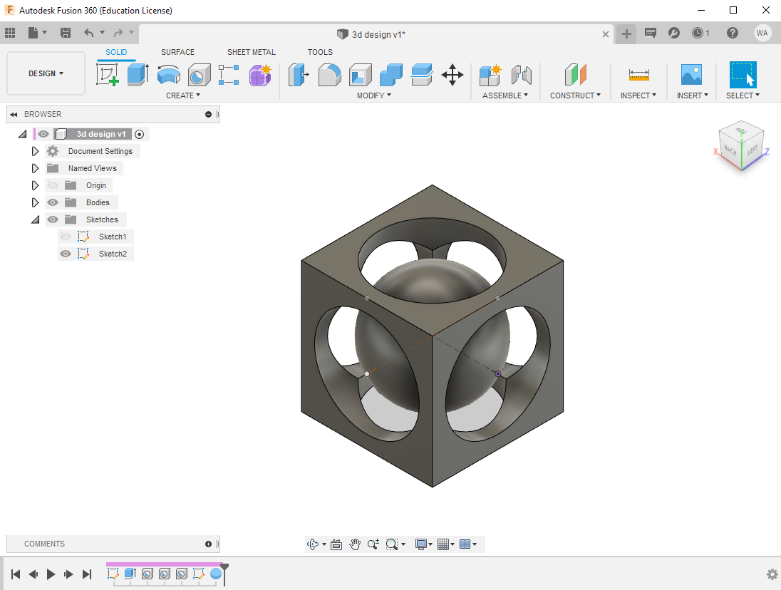 finally I created the sphere inside the cube with 42mm diameter,