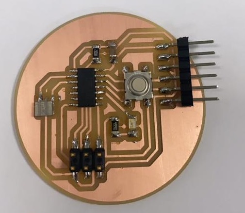 Then milling the board with the srm 20, and I soldered the components. The exact steps to do so are in the electronics production page.