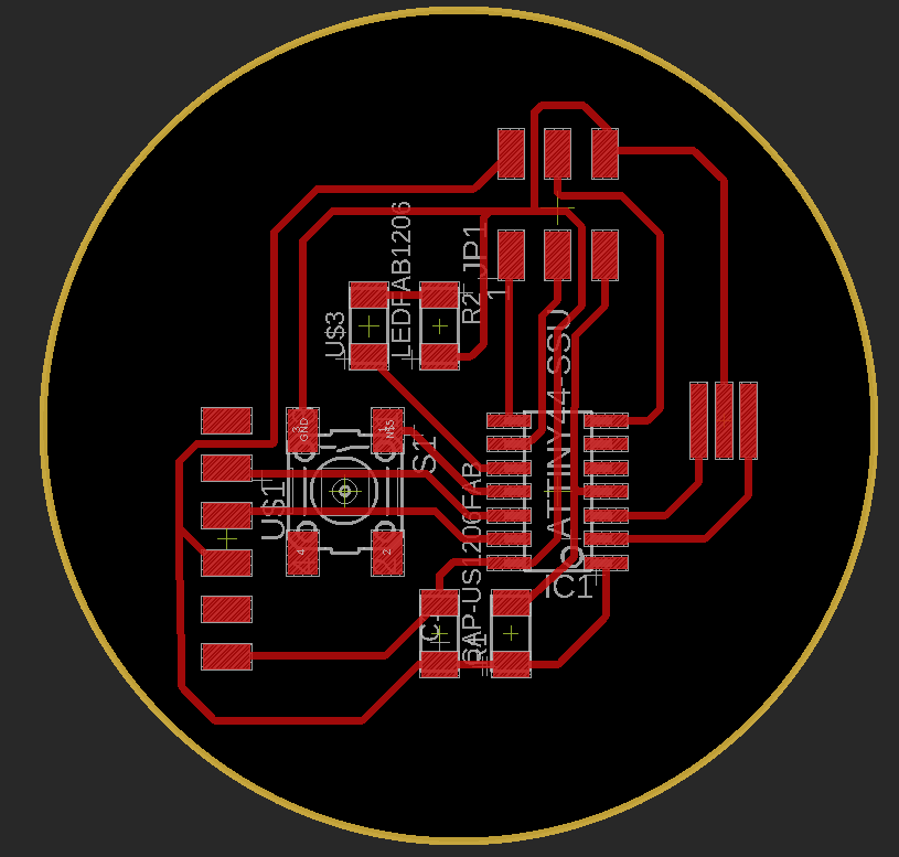 To do so, I used Eagle software to design the circuit board and I have made some modification this was done by adding LED and a Push button