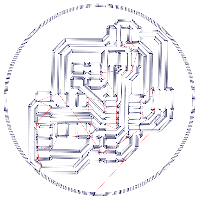 Once the Image of the board is generated, I used the coreldraw software to prepare the outline cut and the traces for Fabmodules.org,