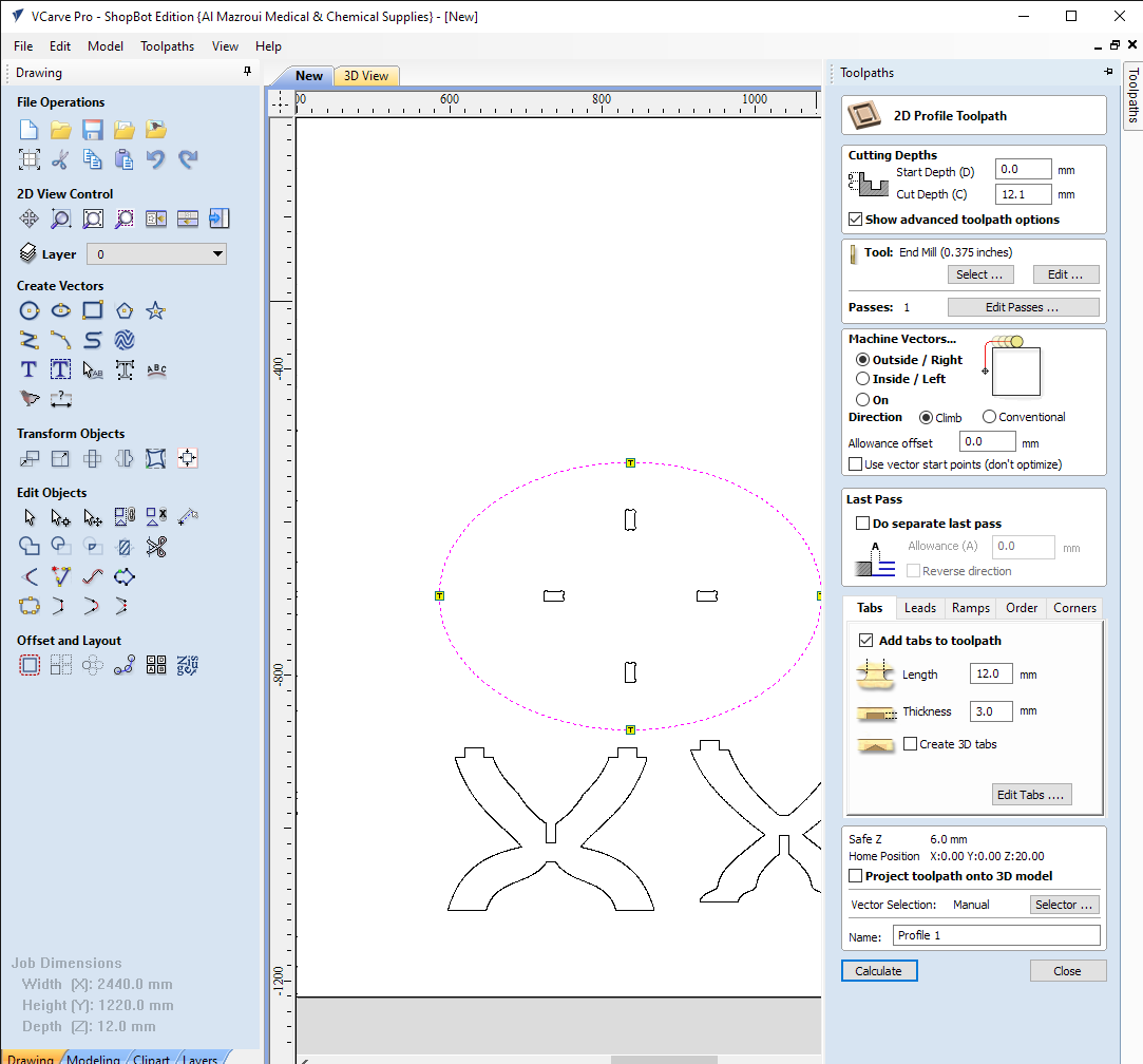 Once the design is ready now it is time to create the toolpath what I did is exporting the dxf files and upload them in the VCarve software in order to create the toolpath.