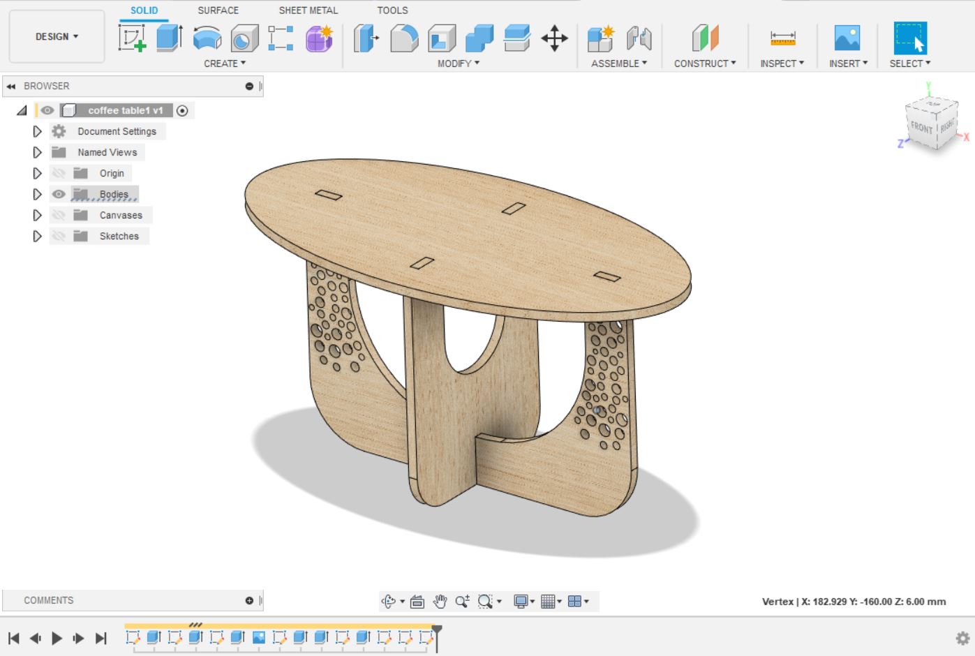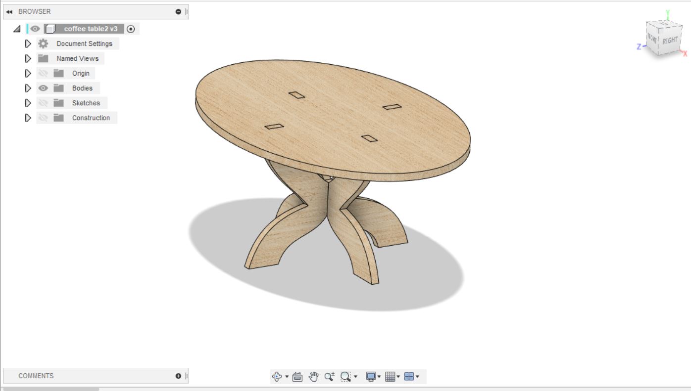 I started by designing my model using fusion 360 software, at the beginning I did not have any idea what design I should come with and cut, but then I decided to build a piece of a furniture.