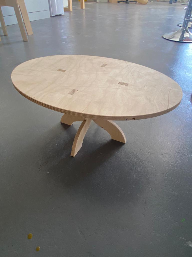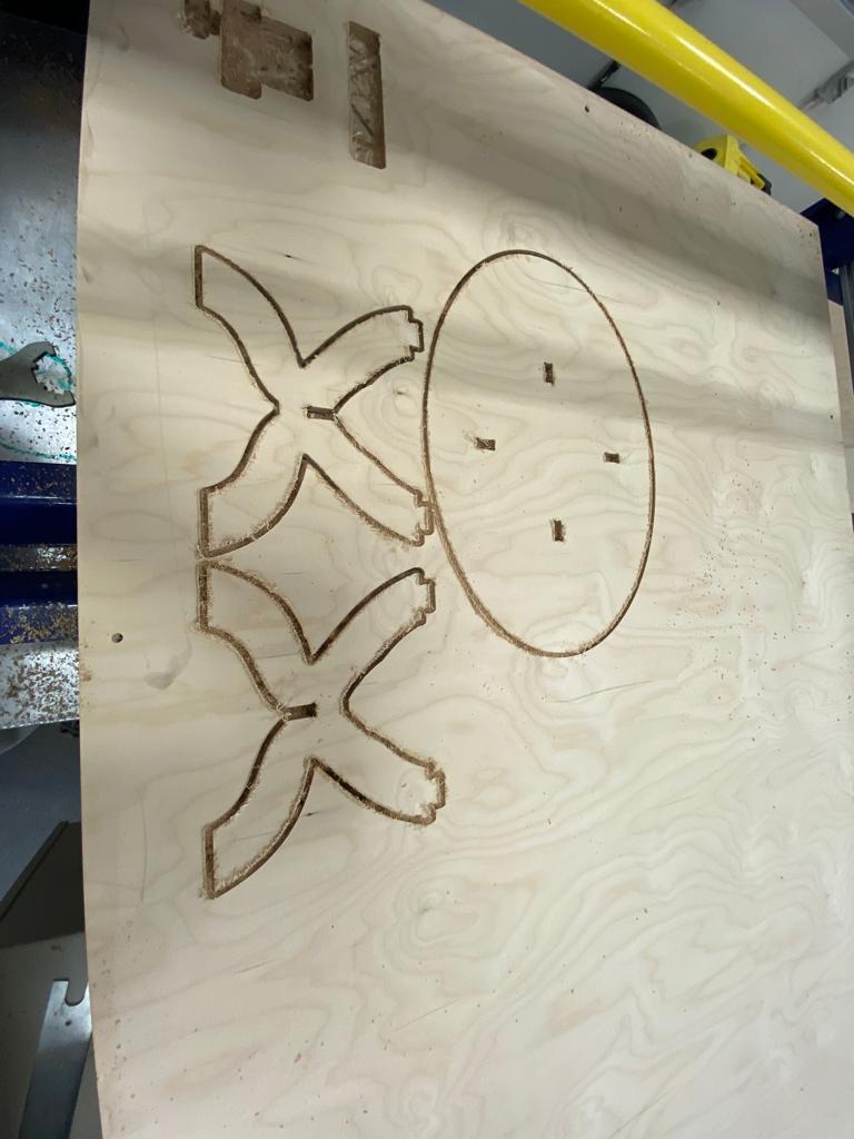 Since the ventilation of the shopbot is broken I had to clean the sheet with a vacuum machine, as you can see that the cut run was good. Then I simply started sanding the parts once I removed them from the shopbot, then I started assembling my tiny cute coffee table.