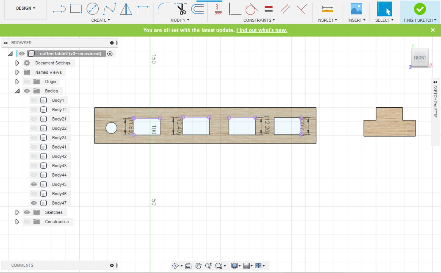 I redesigned the furniture this time making sure the table has shorter legs which will make much stable, and the following parameters were used in the design: