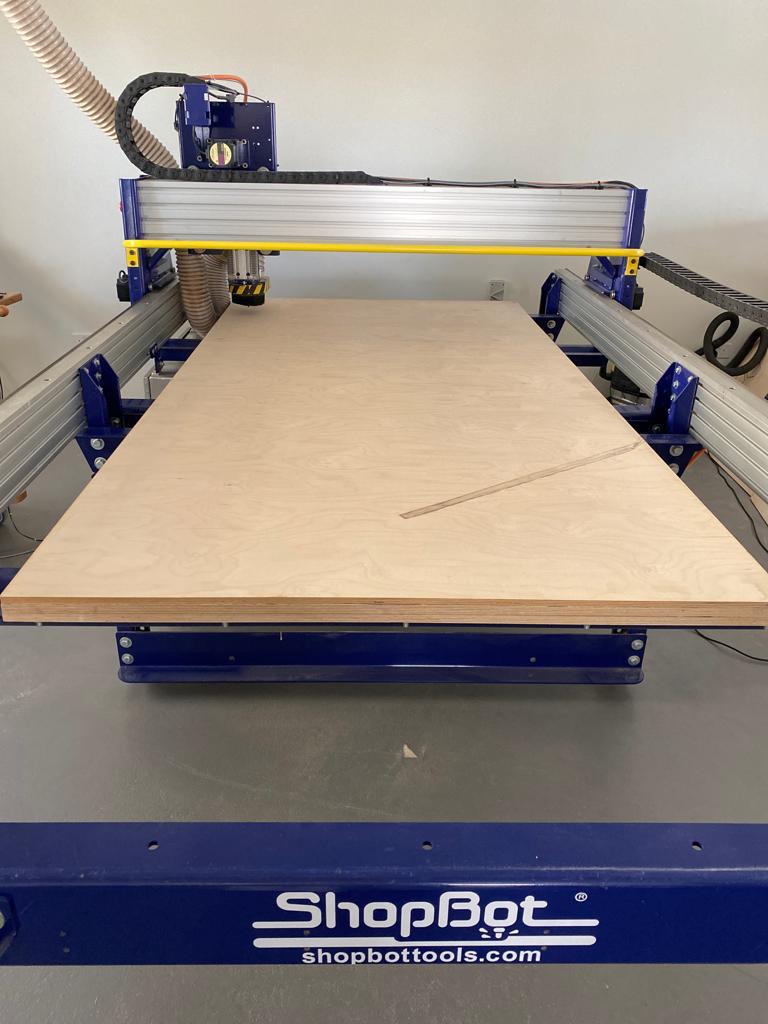 Now it is time to set up the shopbot this is first by placing and moving the shopbot head to the origin X,y axis by using the keypad to control the movement of the shopbot manually, then I used the calibration metal card to Zero the z axis.