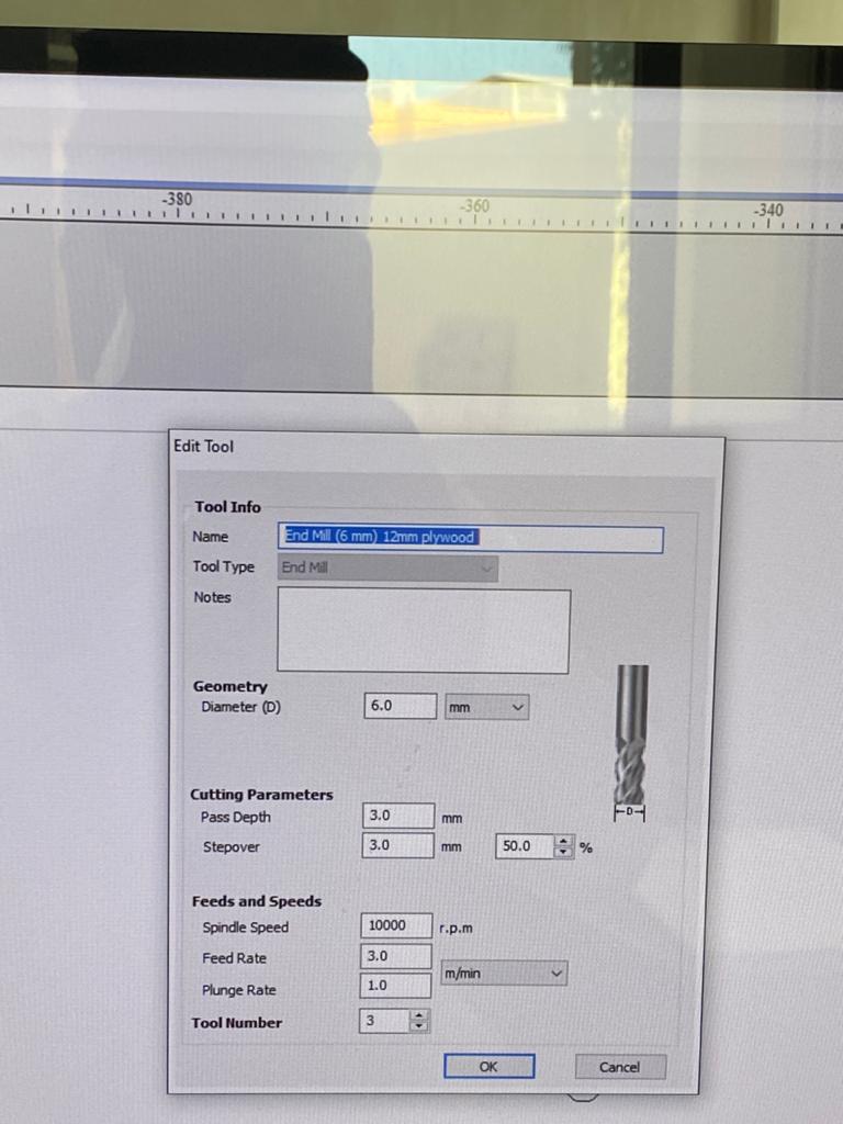 then I started creating the toolpath, this is done by clicking on profile toolpath which is under toolpath tab with the following settings:
