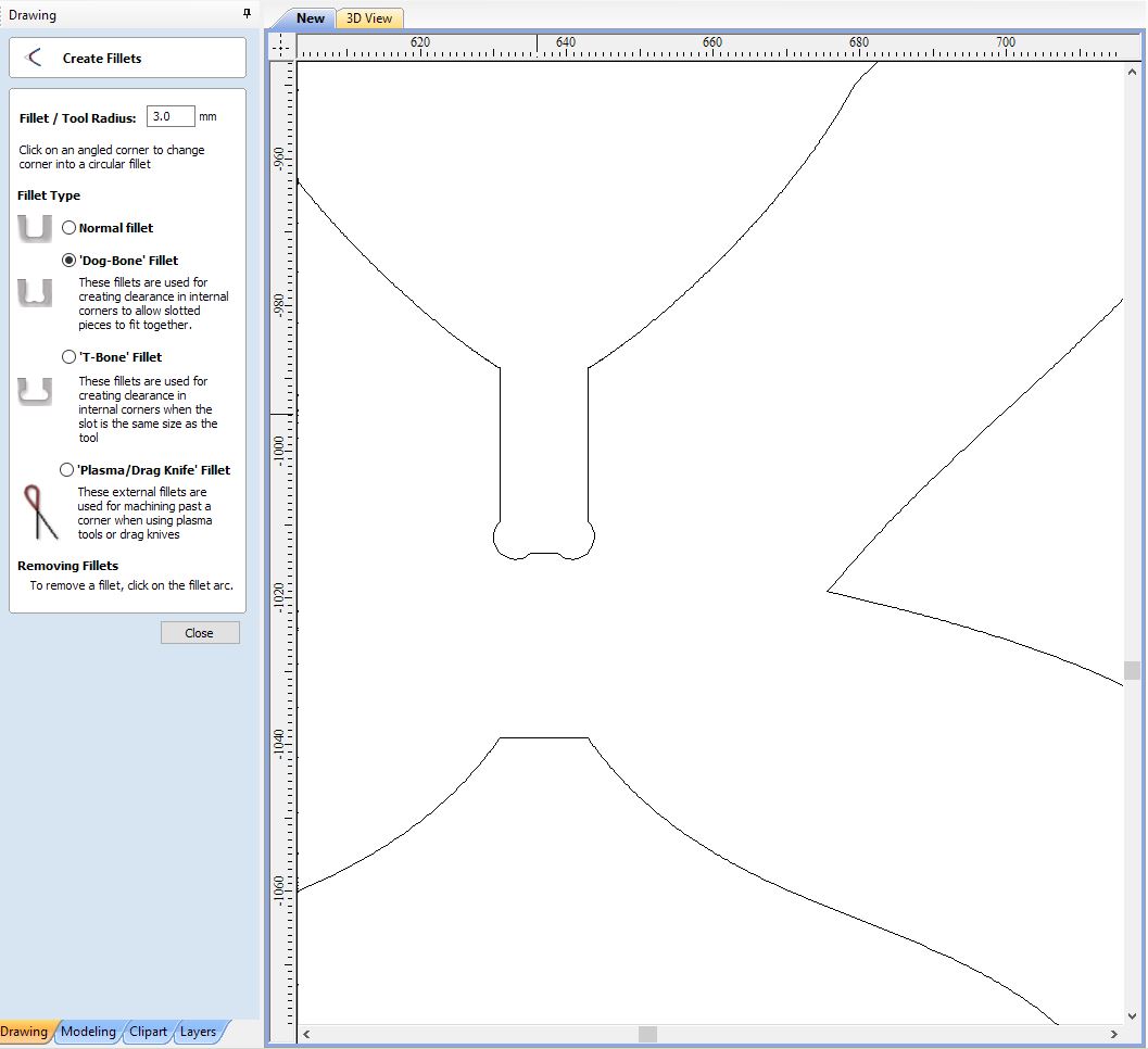 Once I was done with that I had to create the dog bones for the joints so that it give a space and clearance in the internal corners this is done by clicking in create fillets tab with 3mm tool radius