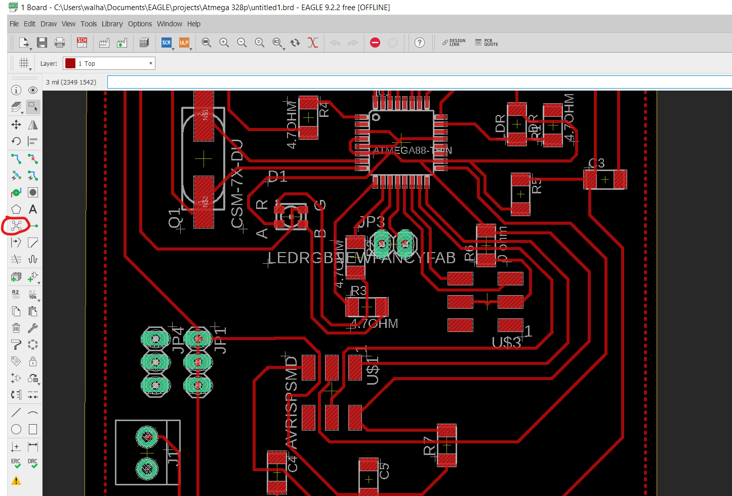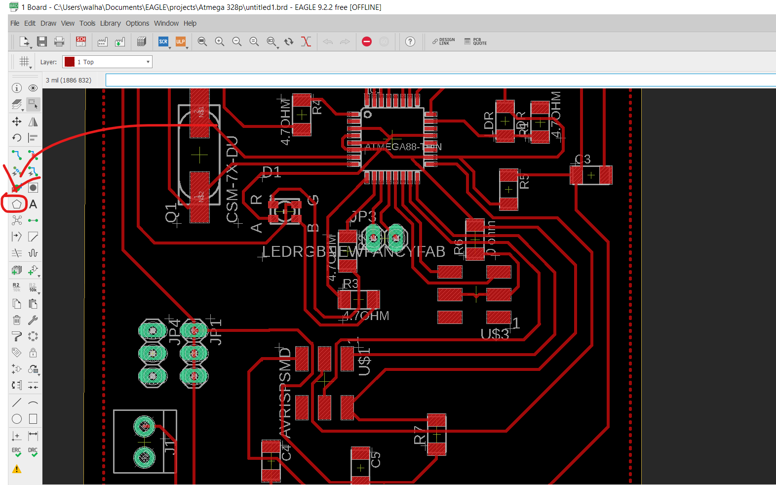 then as usual preparing the board layout which took most of the time where I have to spend most of the time on the routing, but this time I created a common ground to ease the routing where we can reduce the number of traces, to do that I select polygon on the left tool bar