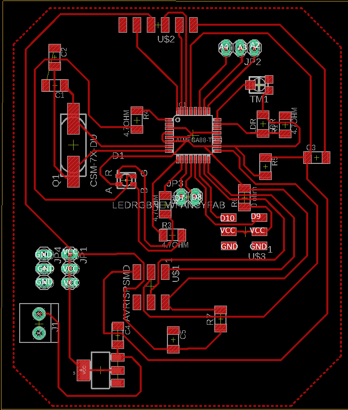 In this week I will use the ATmega 328p that I have fabricated in the input devices week to control a servo motor, below is the board design,