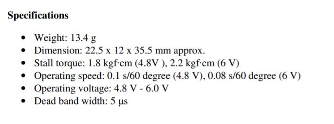 So, before I start controlling the servo motor, I have to go through the Specifications, one of the important things is to know the power requirements and the operating power of the servo motor,