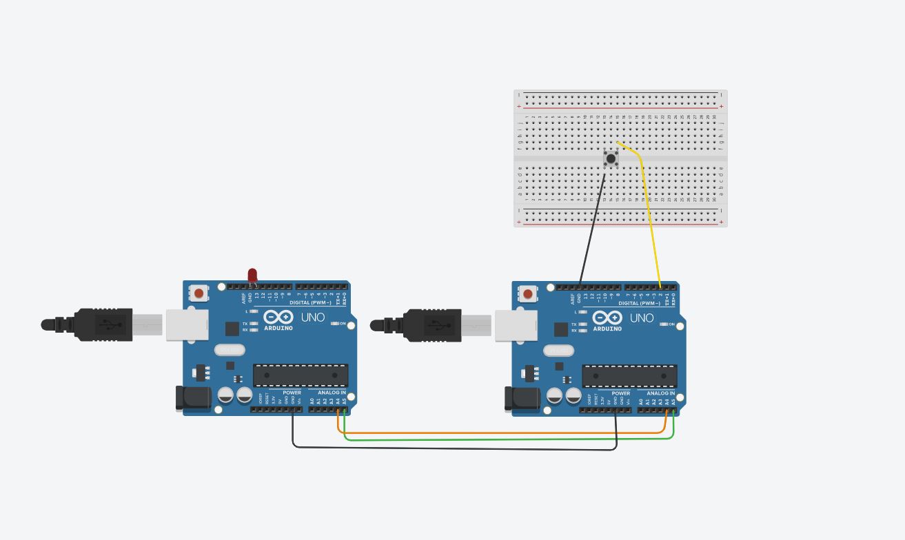In this week I tried to communicate between two Arduinos using I2C protocol, where the master will be attached with a pushbutton and the signal will be transferred to the slave Arduino to light up the LED.