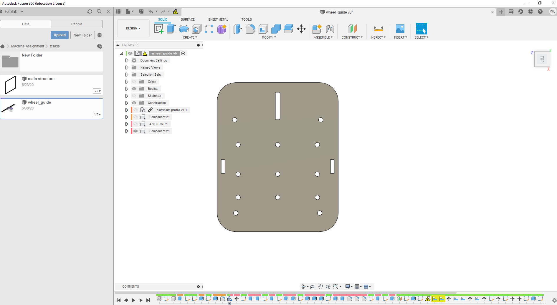 TO do so I first took the measurements of the aluminum profile where the Hdpe part will be fixed to, then I started designing the part using Fusion 360 software