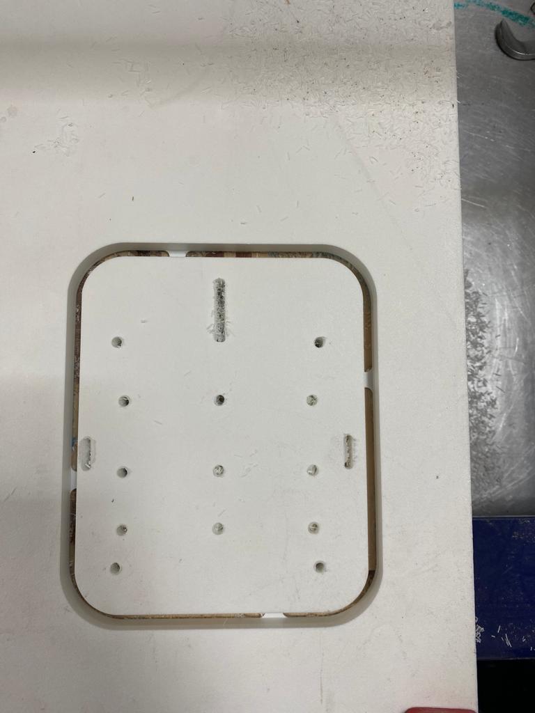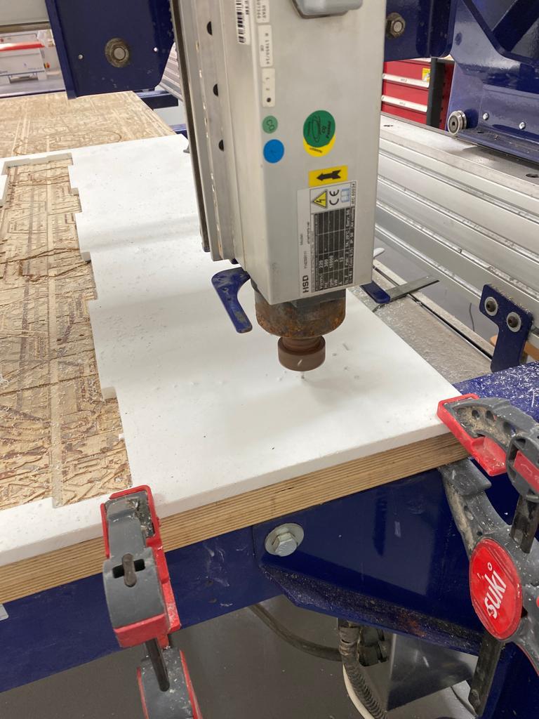 then I prepared the machine and used the clamp to hold the HDPE sheet on the bed of the shopbot, and ran the job after moving the head to the origin,