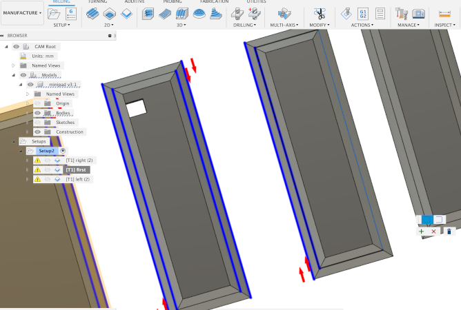 In Fusion360 I designed the box and layed out all the different sides of it, chosing the router bits and passes needed to cut the box out in the Shopbot.