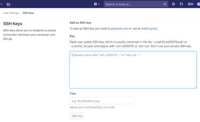 In GitLab tool I went to "setting" and generated a new ssh key. In GitBash I pasted the key and pressed enter. Then I entered a filename, where to save the key. Then I copied the key fingerprint and pasted it in GitLab in "Add an SSH key"