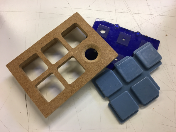 I had already made the frame for my soundpad, milling it in mdf. But for the buttons I wanted to use silicon. So I used the design for the frame I had in Fusion360 to make a "negative" to mill a casting mould for the silicon.