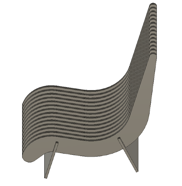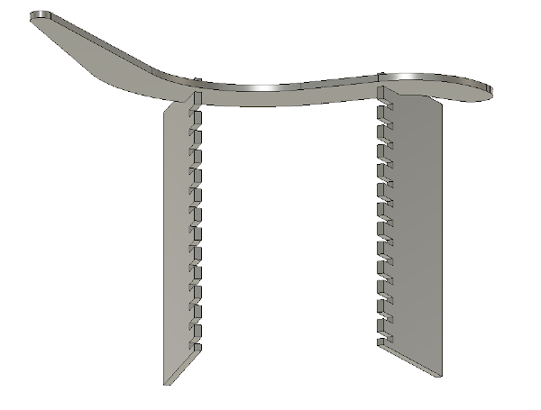 After this small exercise I started designing a chair. I measured a normal chair in the Fablab to get the size right and designed it in Fusion360 using parameters in full size. I set parameters for material thickness 10mm and and a dominating height number then used that parameter to set different measurements. The only locked measurments were degrees of chairs angles.