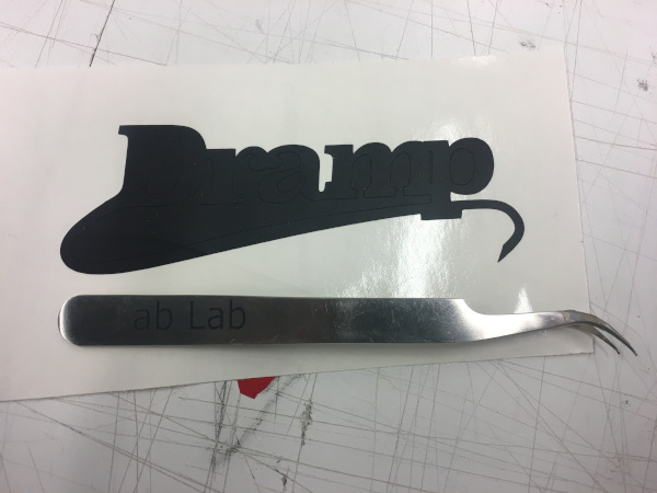 For my first vinyl cutting I decided to make a simple logo for my amp. I used Inkscape to write a text, clicked on “path menu” and chose “Object to Path”. In “view” I selected “Outline” and then I ungrouped the letters in the “Object” menu. I moved the letters so they were all touching end then grouped them together again. Then I used the pencil to draw a curved line under the letters. I then did “stroke to path” to make it a solid line. After selecting the view “outline” I saved it as a pdf and took it to the vinyl cutter.