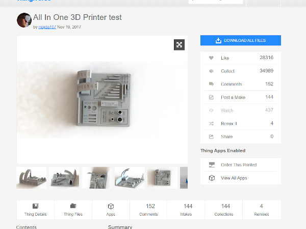 I went to Thingiverse on the internet to get a 3D printer test model that had all the necessary tests and design rules to see the printers capabilities. I downloaded the files and extracted 3D_Printer_test_stl.
